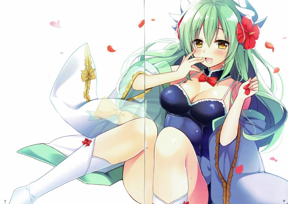 水着虞美人のツインテを掴んでバックでハメ倒すエチ絵