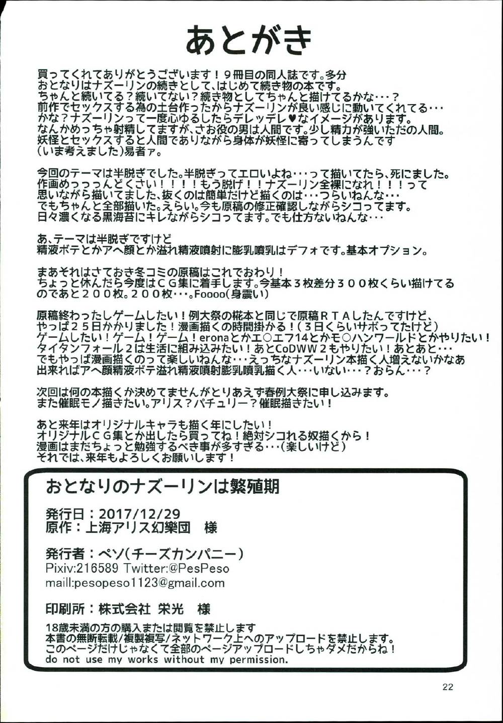 おとなりのナズーリンは繁殖期
